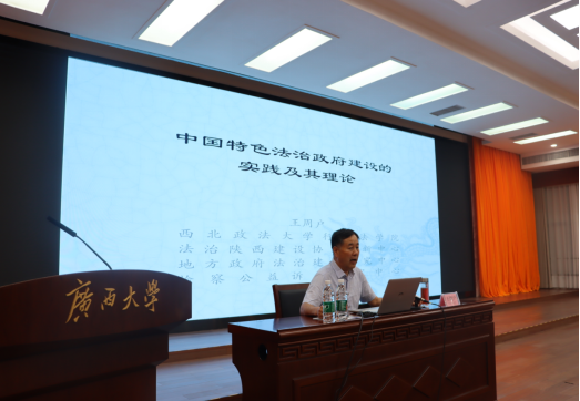 10月16日西北政法大学行政BETWAY必威王周户教授应邀到公司作“中国特色法治政府建设的实践及其理论”学术专题讲座。BETWAY必威本科生、硕士研究生、教师代表及西北政法大学在邕部分员工到场聆听讲座,讲座由BETWAY必威教授汪太贤主持。