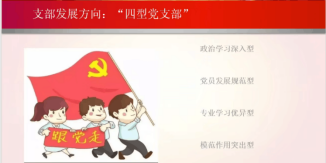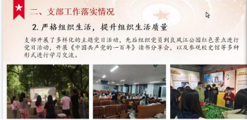 本科生第一党支部书记陈焜如主要围绕支部工作情况、支部工作亮点总结以及存在的问题与解决举措等方面展开陈述。该支部严格按照规定和要求发展党员、增强程序规范性、保障发展党员工作的质量,落实“三会一课”制度,提高组织活动质量,创新支部制度建设,发挥党员的先锋模范作用,并且总结了相关工作亮点,具体包括制度创新、党建带团建以及培养接班人。针对政治学习碎片化、开展活动形式单一、支部内同志联系不紧密等问题明确未来发展方向,进一步打造政治学习深入型、党员发展规范型、专业学习优异型以及模范作用突出型的“四型党支部”。