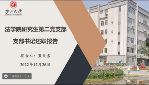 研究生第二党支部书记蓝天雪主要围绕支部基本情况、主要工作建设、总结与反思三方面展开,研二支部扎实落实了“三会一课”制度,组织生活会的搭建,主题党日活动的开展,党费收缴明细的记录。并且具体分析了该党支部的相关优势,包括时间限制小工作规划方面具备灵活性与多样性,党员工作队伍积极性高、主动性强,善于将法学思维理论与思想学习、服务实践相结合,同时针对支部现存问题指出将进一步提升新任支委的工作能力,充分利用各学习平台加强党课学习教育,制定明确的学习规划,完善会议的记录形式。