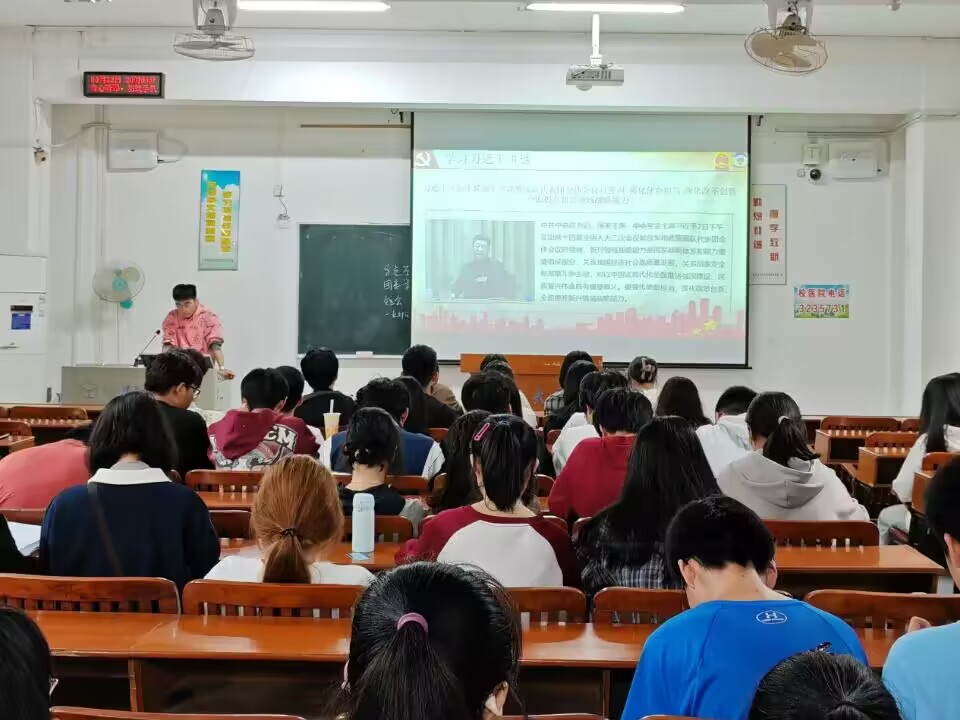 本次活动分为两会概述,听报告,学讲话,知两会新词四大板块。会议伊始,同学们通过纪录片深入了解了两会的历史脉络与显著贡献,感受两会制度对我国政治、经济、文化等领域的卓越贡献。在听报告环节,我们聚焦2023年政府工作报告,领略了以习近平同志为核心的党中央,在复杂多变的国际环境中,带领全国人民攻坚克难,推进高质量发展,稳定社会大局,推动全面建设社会主义现代化国家的风采。随后,同学们学习了习近平总书记关于高质量发展、新质生产力发展、深化改革创新的战略思想规划,深刻领会到新兴领域战略能力是国家战略体系的重要组成部分。在知两会新词环节,我们围绕“新三样”、“超长期特别国债”等十二个新词进行了深入探讨,这些新词不仅反映了新时代中国的发展脉搏,也激发了同学们对祖国未来的无限憧憬。