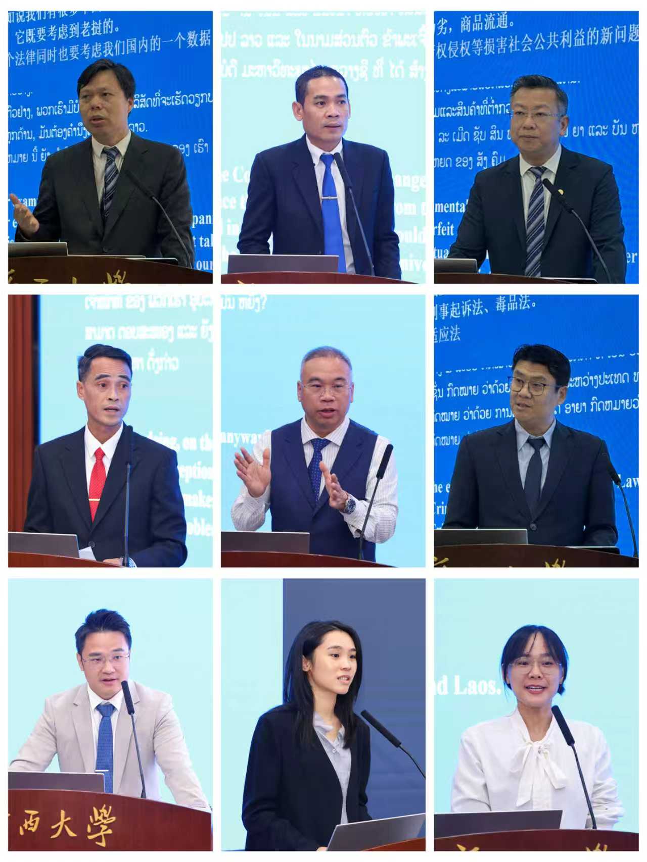 研讨会聚焦中老命运共同体的法治协同机制建设,分两个单元、共安排了9个学术报告。老挝最高人民检察院执法监察局副局长凯马尼・占泰提,波桥省第一区人民检察院检察长孔乔・冯萨万,赛松奔省人民检察院刑事检察室主任麦赛・宋猜宁,广东华商(南宁)律师事务所主任莫基君,中国老挝法律服务中心主任唐劲松,广西望之辩律师事务所首席律师龚振中,以及公司青年教师张晔、张亚军、韦洁等专家学者依次登台,围绕中老检察机关职能比较、电信诈骗案件的域外管辖、中老刑事司法协助与证据转换、毒品案件合作的法律适用、跨境赌博治理制度优化、跨境数据安全规制、跨境公益检察协作等主题分享了案例经验与研究成果,引发与会者热烈讨论。