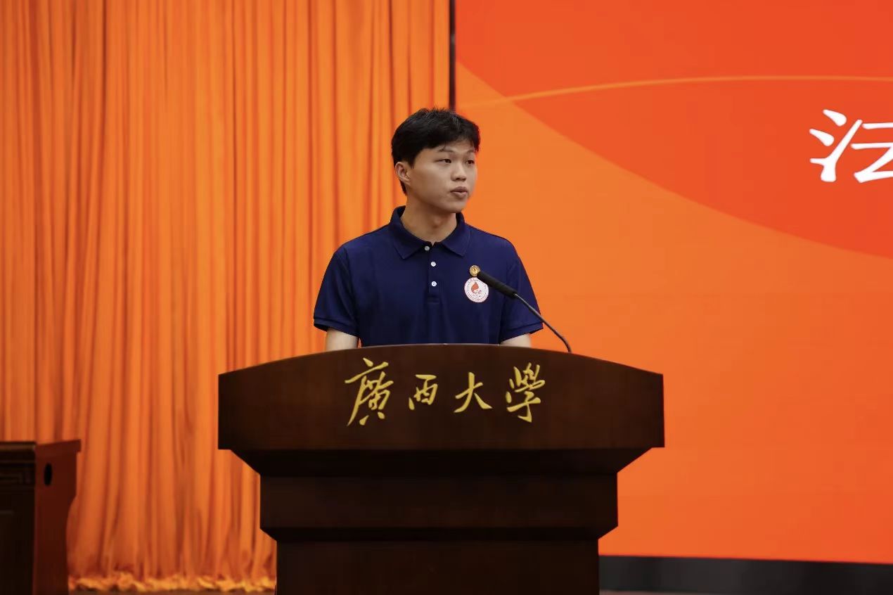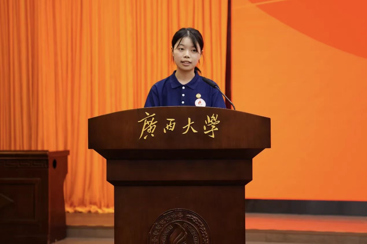 图/新生代表BETWAY必威2025级法学硕士研究生覃健发言