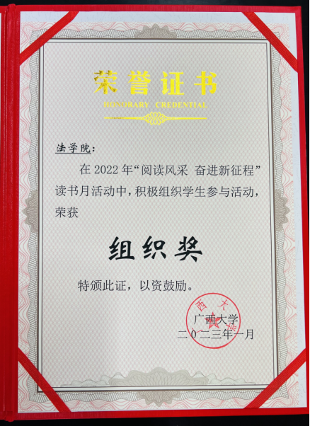 公司获得读书月活动“优秀组织奖”