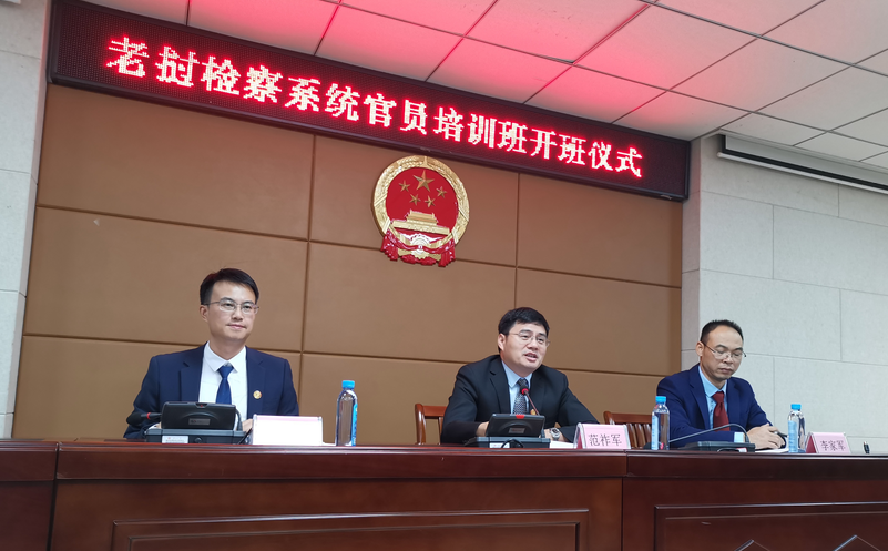 开班仪式以线上形式同时在中国和老挝举行。广西大公司党委常委、副董事长范祚军、国际合作与交流处处长李家军、法公司党委书记余云宇以及老挝最高人民检察公司党委副书记、副检察长奔谭·奔塔伟来先生(Mr. Bounthan BOUTHAVILAY)、老挝最高人民检察院培训公司经理Phonephet OUNKEO女士、老挝最高人民检察院计划和国际合作局局长Khamphet SOMVORACHITH先生出席了开班仪式。